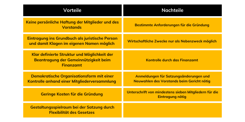 Vor- und Nachteile von eingetragenen Vereinen